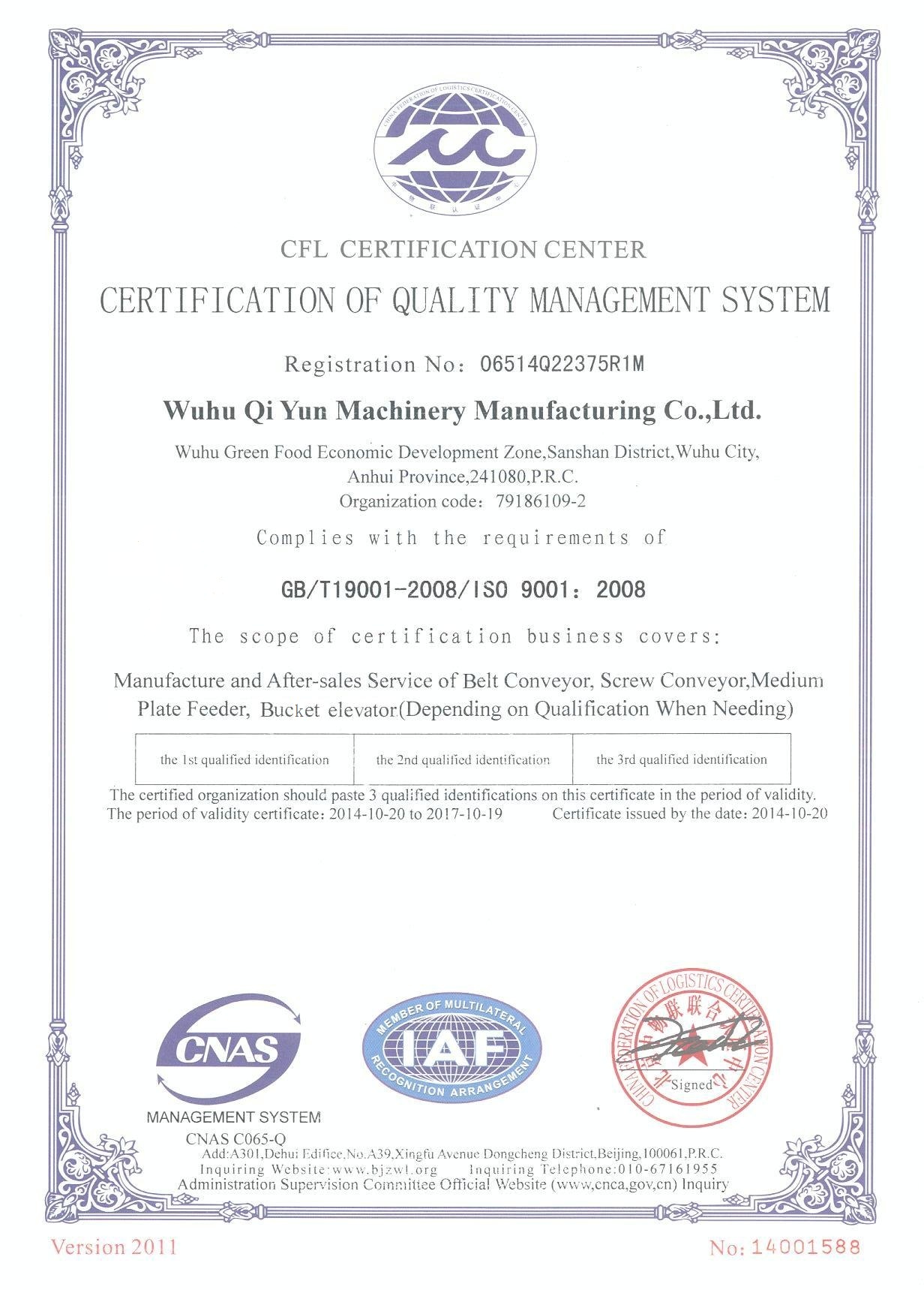 擁有專利特有技術的“蕪起”牌斗式提升機以其優(yōu)秀的品質(zhì)、優(yōu)越的環(huán)保性獲得用戶的青睞。產(chǎn)品遍布全國。。。。